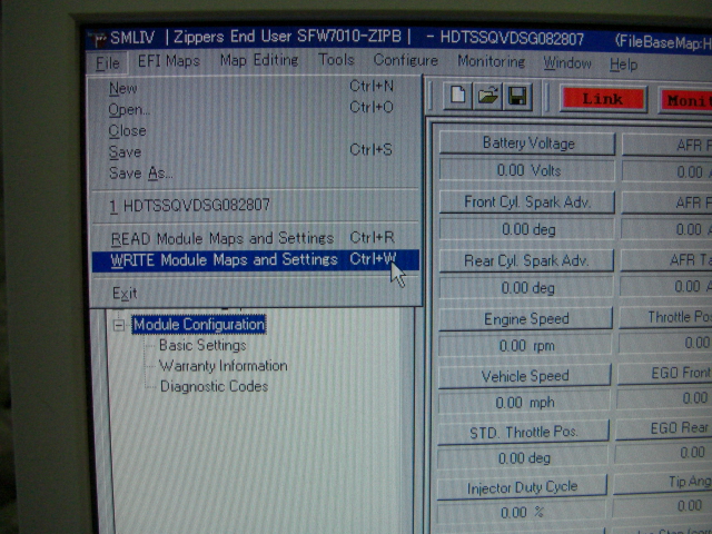 ハーレーダビッドソンのフルコン、サンダーマックスの取り付けが終了したのでPCと接続してセッティングデーターを書き込みしてみます。