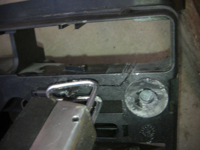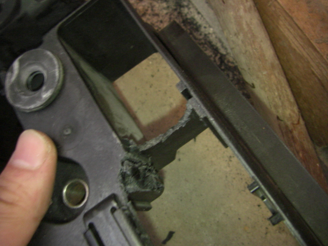 はじめはフレームの下のほうにカプラーを固定しましたが、横着せずにステップ、ブレーキペダルブラケットをはずしましょう。