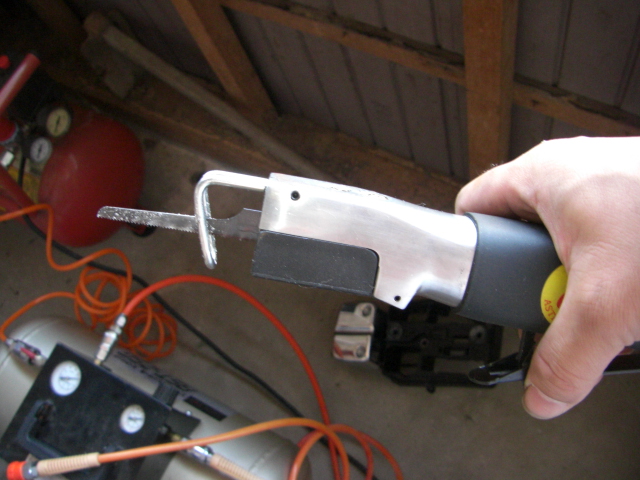 コンプレッサーの圧縮空気でブレードを往復運動させて細かい部分の切り出しに活躍します。