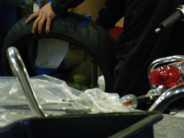 ハーレーダビッドソン(08年式ダイナローライダー)のリヤタイヤを交換しようと思います。
