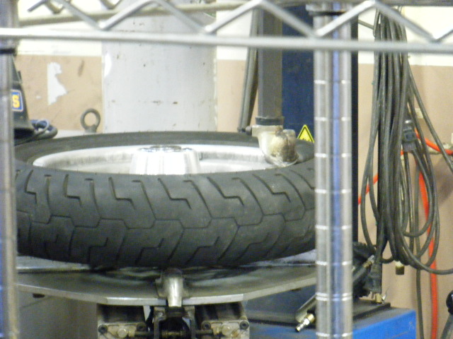 組み換えの終わったハーレーダビッドソンのタイヤは空気を入れて準備OK
