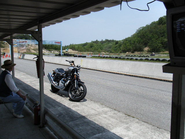 XR1200の試乗をするサーキット走行会出場選手。決まってますね^^