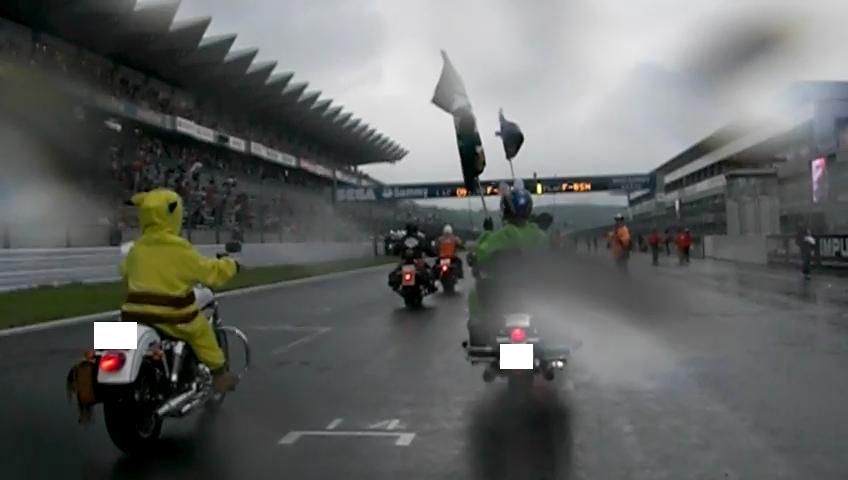 ちょっと貴重な体験かもしれません。ほかのどんなハーレーミーティングに参加したって、これだけの数のハーレーのノーマルマフラーエンジン音の集合を聞くことは不可能でしょう^^;