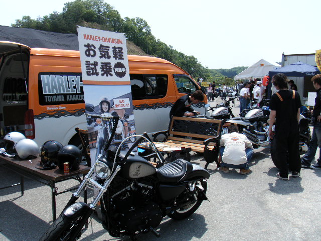おわらサーキット会場。走行会ではハーレーのスポーツスターやビューエルも出走していました。