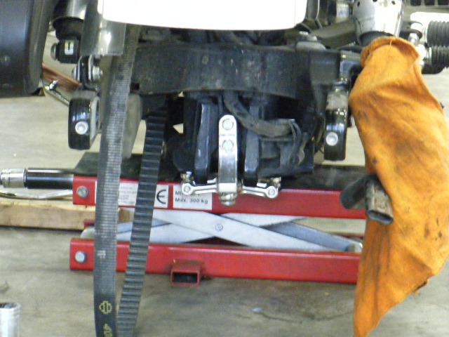 車体から取り外したリヤホイールはドライブベルトスプロケットをいったんはずします。