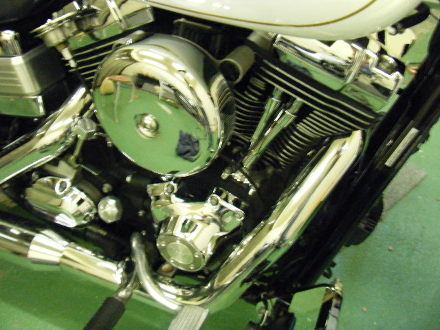 ちょっとぼけましたがバリアスコートでぴかぴかのハーレーダビッドソンのエンジンです。
