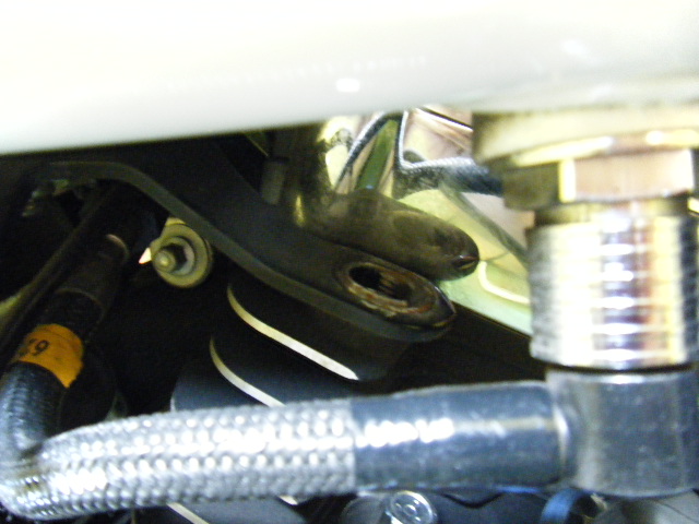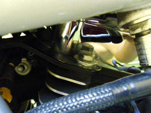 リヤシリンダーヘッドとフレームとのリンケージマウントベースを固定しているボルトがどこかへ行ってます・・・・・・