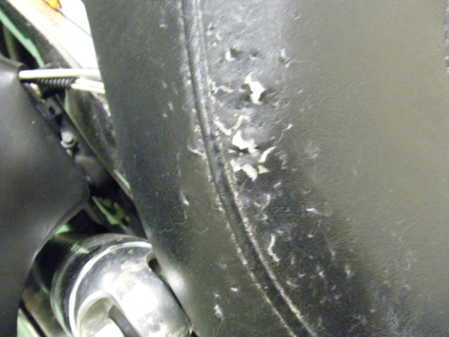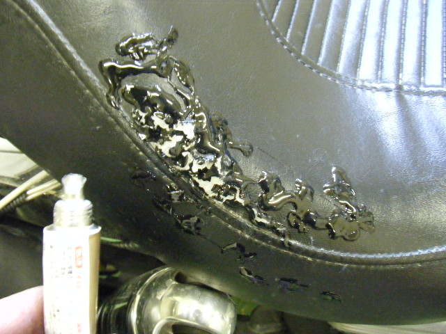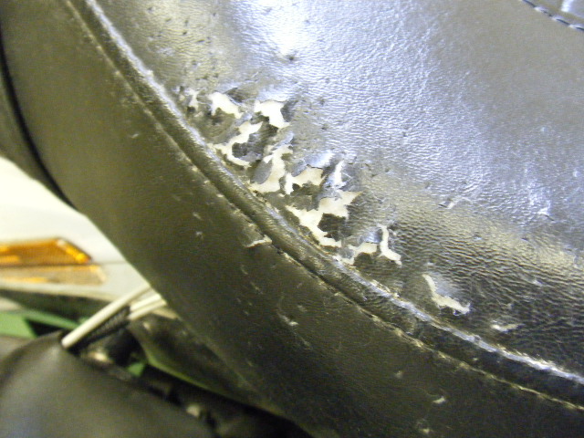 ガレージに行くとハーレーダビッドソンのシートのヘリが白くなってて、最初何がおこってるのかわかりませんでした・・・・・