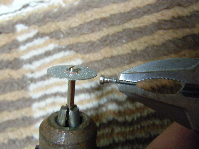 そこでマイクロリューター用のダイヤモンドカッターでねじにマイナスの溝をつけます。精密ドライバーのサイズの溝がいい具合に入りました。