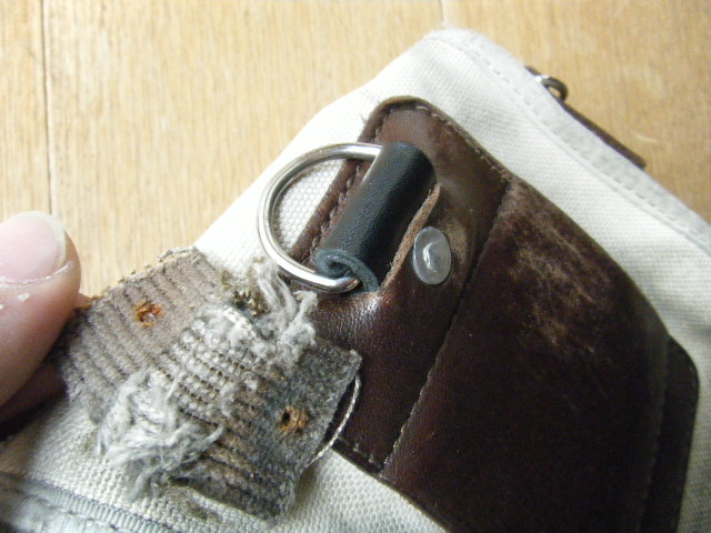 それといつも愛用している犬印の幌布メディスンポーチのカナビラ取り付け部がほつれてきたのでここも修理。