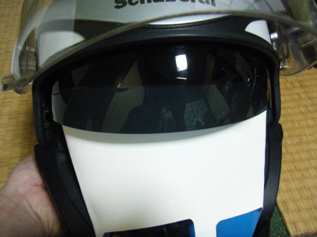 ハーレーダビッドソン用にいつも使っているシューベルトのダブルバイザーヘルメットですが、インナーバイザーを取り外して反対にするとデザインが変るのでやってみました。