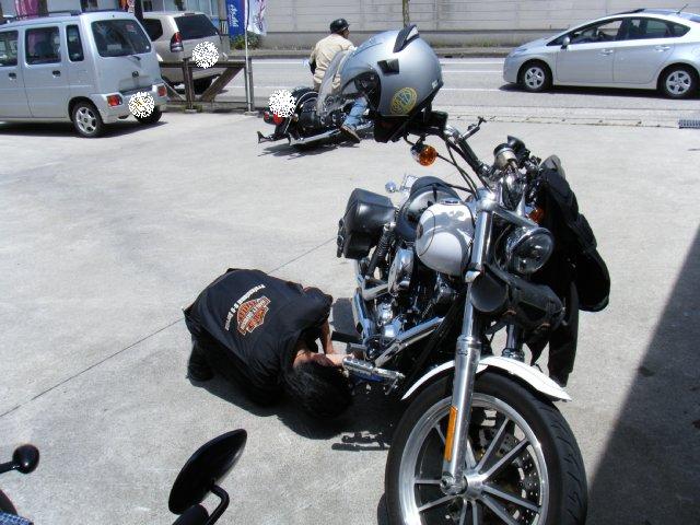 富山のハーレーディーラーでリヤブレーキの踏みしろを調節してもらって今日は帰ります。