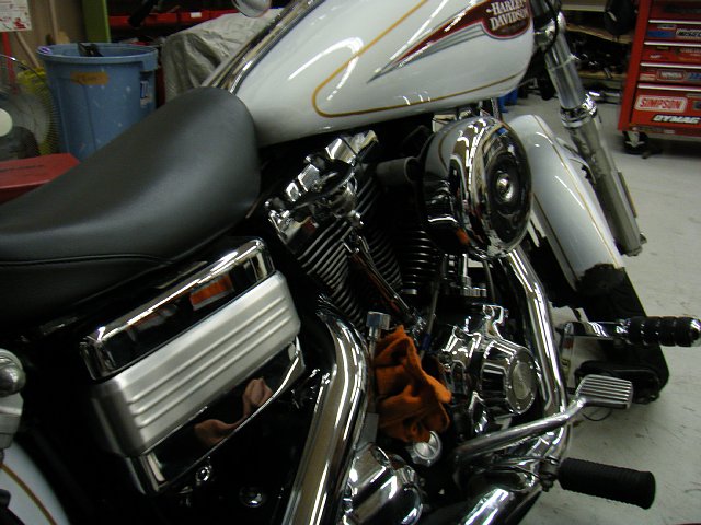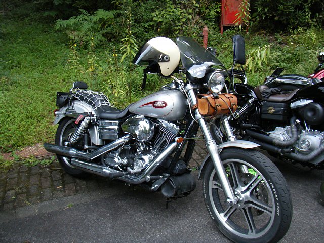 並んでいるハーレーダビッドソンを見ていると、僕と同様 ダイナにバックギヤを着けている人を発見!