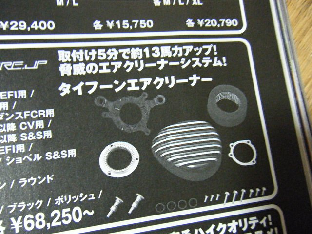 最後に、うわさのハーレーダビッドソンのタイフーンエアクリーナー・・・・