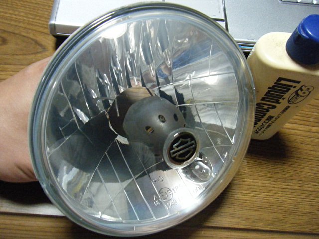 中を磨きやすいようにヘッドライトのシェードを一旦はずします。ハーレーダビッドソンにHIDなど取り付けするときに邪魔になってもはずせばいいですね。