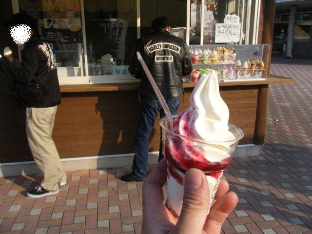 帰りは道の駅で無愛想なオネーサンが人気?のソフトクリームを食べます。