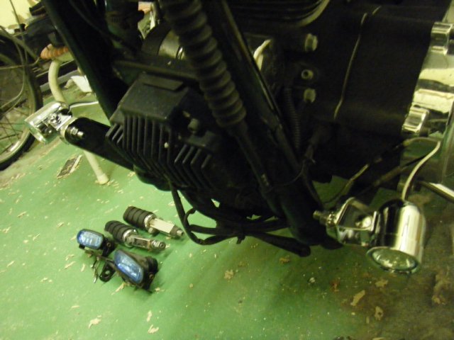 ハイウエイペグを外して丸型LEDフォグを取り付けします。