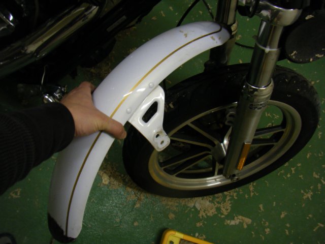 ハーレーダビッドソンのフロントフェンダーのサビを処理するためにダイナローラーダーから取り外してみます。