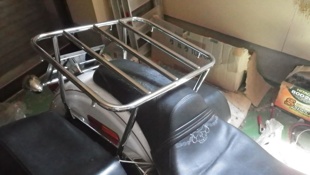 ツアーパックを外してリアキャリアだけになった状態です。どうせ二人乗りしないのでこのままにしておきます。座布団敷けば二人乗りできないこともないですが、真ん中のパイプがいい具合に食い込みますw