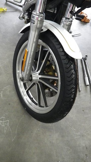 ハーレーダビッドソンのフロントタイヤ交換終了です。