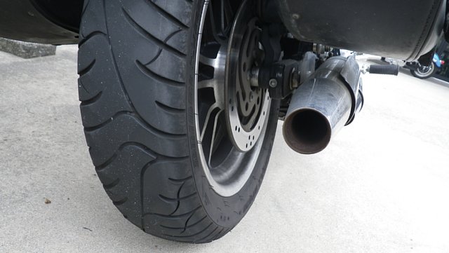 今回はリヤタイアの扁平率をまた落としてみました。タイヤ外径が2cmほど小さくなるので脚付きがよくなり、スプロケの比率を変えるのと同じことなので下道メインの走行で体感トルクが確実にUPできます。(そのかわり高速走行ではトップギアでの巡航回転数が少し上がります)