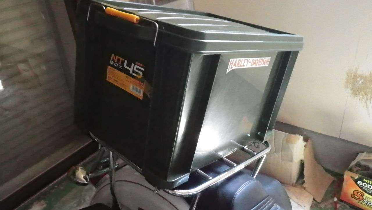 ホームセンターで購入したツールボックスですが、ハーレーダビッドソンのシールを張ったので誰がなんと言おうとハーレーダビッドソン純正ツアーパックです^^