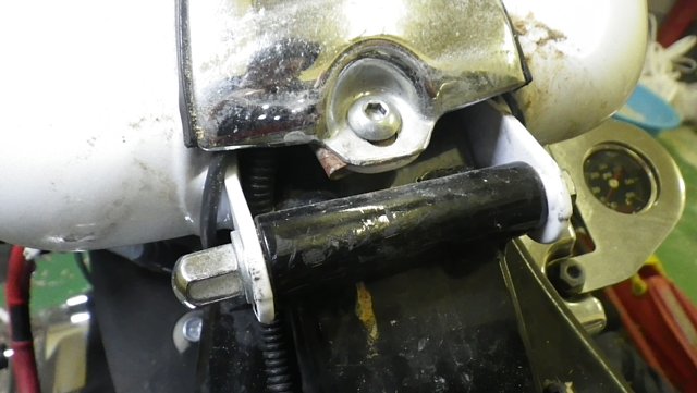 ハンドル側も同様の締め付けトルクで戻しますが、ここのボルトはタンクを持ち上げるとき抜きます。
