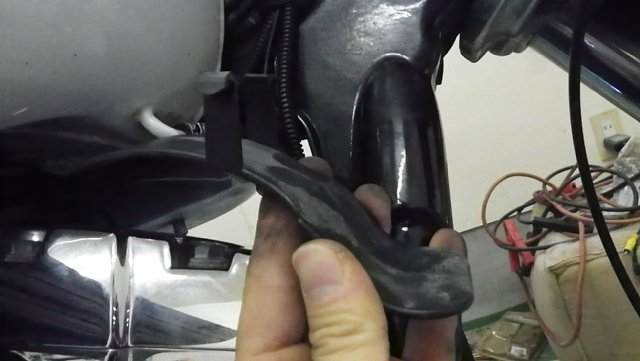 手が入る隙間ができたのでフレームネック下の樹脂ハーネスカバーを外します。