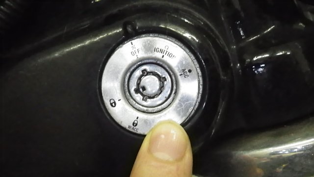 現行ダイナはフォークロックとイグニッションスイッチが一体になってます。国産じゃ当たり前なんですけどね。
