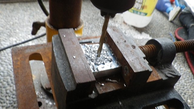 下穴が空いたらM8のタップをボール盤のドリルチャックに咥えてはじめだけ切り込みます。これで楽に垂直にタップ立てができます。