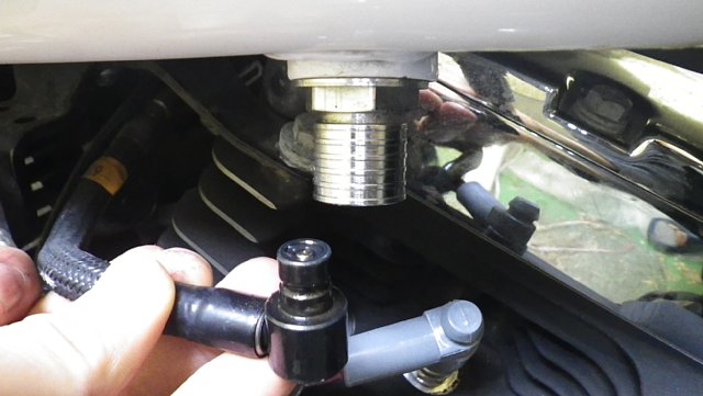 ネック下のハーネスを引っ張り出すためにタンクをずらさないといけないのでサービスマニュアル通りに今回は燃料ラインの圧力を抜く作業もしておきます。