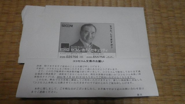 ハーレーダビッドソンに取り付けしてある盗難防止装置のココセコムのうちの一つが、周波数再編に伴い使えなくなるので交換しろとのお達しが、ミスター長嶋から着ちゃいました^^;