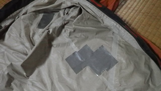 見栄えはあれですが、裏と表から貼り付けて破れをふさぎました。