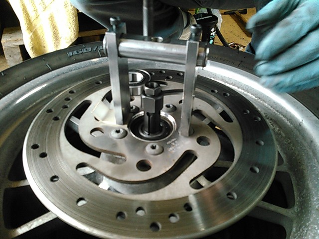 ハーレーのホイールは国産のようにベアリング保護のダストシールが別部品で設計してないのでベアリングの痛み方は早いようです。