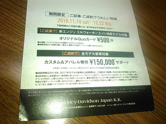 ハーレーダビッドソンジャパンからミルウォーキーエイトの市場案内が届きました。