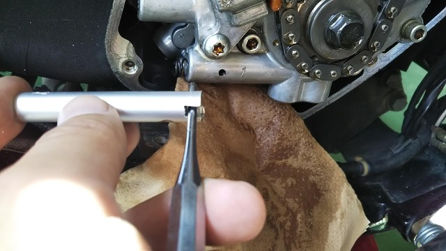 ボルトの位置的にねじ穴修正用の特殊工具を使ってもドリルを当てられそうもないのでヘッドばらすのは避けられそうにありません。