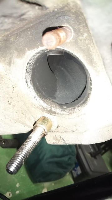エキパイのフランジには朽ちて固着したリテーニングリングが・・・・