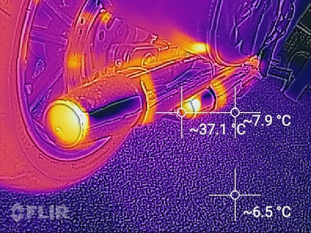 サーマルカメラで見るとわかりやすいですね(実画像と温度分布、焦点によってはずれてます)