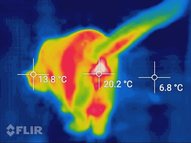 CAT(キャタピラー)ブランドでオンキョー製のスマホS60に搭載されたFLIRのサーマルカメラで撮影しました。