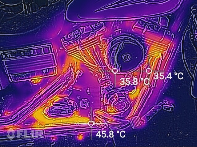 ハーレーのエンジンの温度とか目に見える形で写せるといいなと以前から思ってましたが、ようやく手に入る価格で普段使いできる熱感知カメラがでたので手に入れました。