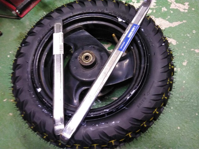 ¿·ÉÊ¥¿¥¤¥ä¤òÁÈÉÕ¤±¤ë¤È¤¤Ï³°¤·¤¿¥¿¥¤¥ä¤ò²¼¤ËÉߤ±¤Ð¥Ç¥£¥¹¥¯Â¦¤ò²¼¤Ë¤·¤¿¤È¤¤ËÉ⤫¤»¤é¤ì¤ë¤Î¤Çºî¶È¤·¤ä¤¹¤¤¤Ç¤¹¡£
