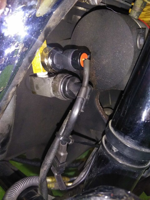 (精度の高い電子式の油圧センサーは上に向けての取り付けを指定されるのですが、KOSOのセンサーでは特に指定なし、形状も純正の油圧センサーに近いのでそれでいいのかな)