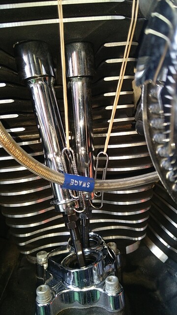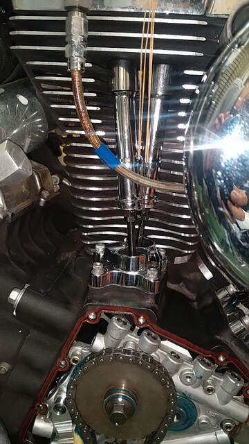 すでにアジャスタブルプッシュロッドが組み込んであるので、プッシュロッドカバーを上にずらしてクリップとゴムで作ったSSTで引っ張り上げておきます。