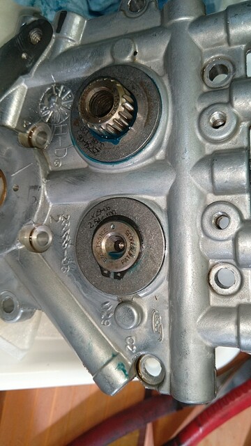 ここを緩めずにカムサポートプレートだけオイルポンプごと引き抜けばポンプの芯出ししなくてもよいという記事を見かけたことがあったので念のため書いておきますが、サポートプレートを元に戻すときに寸分たがわず戻せるならという前提です。無理ですよね・・・