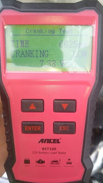 コンプレッションリリース機構の目に見える効果はバッテリーテスターのクランキング電圧に現れました。
