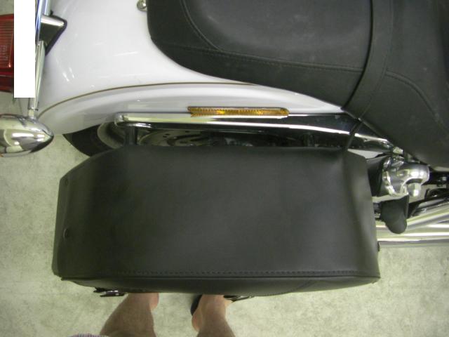 ハーレーダビッドソン ダイナローライダーには純正のレザーサドルバッグを取り付けしてあります。