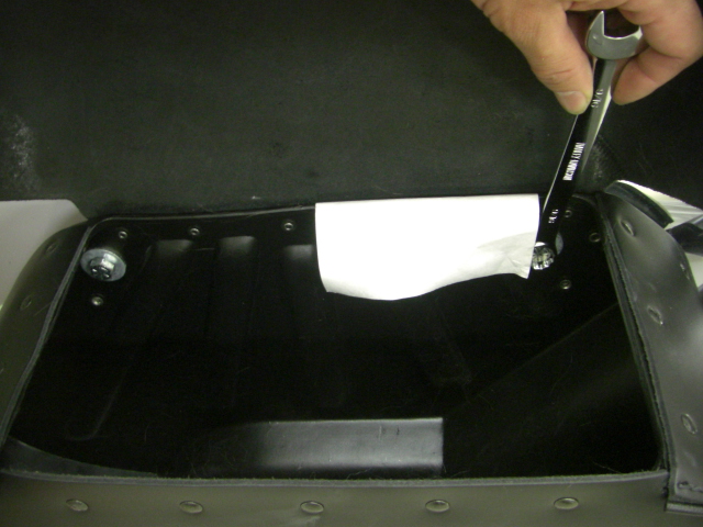バッグ本体はフェンダーレールのボルトを長くしたものとカラーをはさんで2箇所で止まっているだけです。(カラーの長さに違いがあるのですが、フェンダーに平行にサドルバッグを取り付けようとすると短いカラーが前方、長いカラーが後方でしっくり来ます)