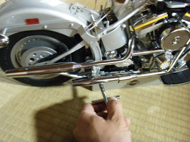 ハーレーダビッドソンのパーツの取り付けはマフラー(前シリンダー)とシート、ピリオンシートです。