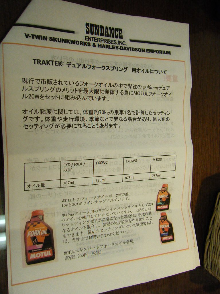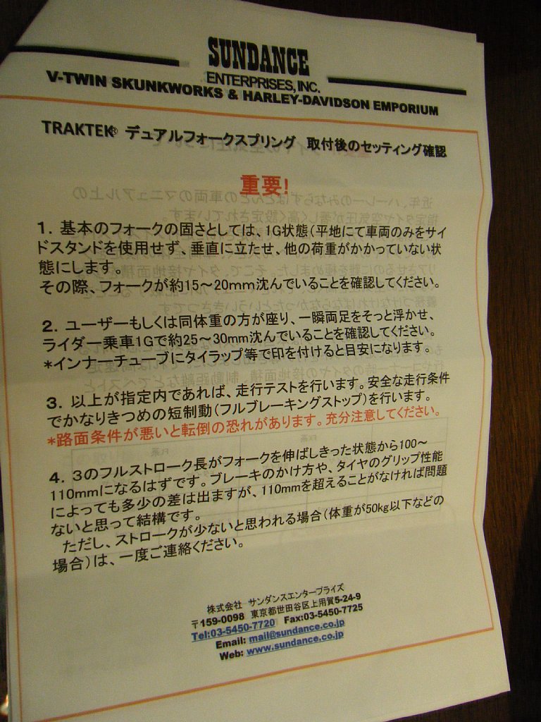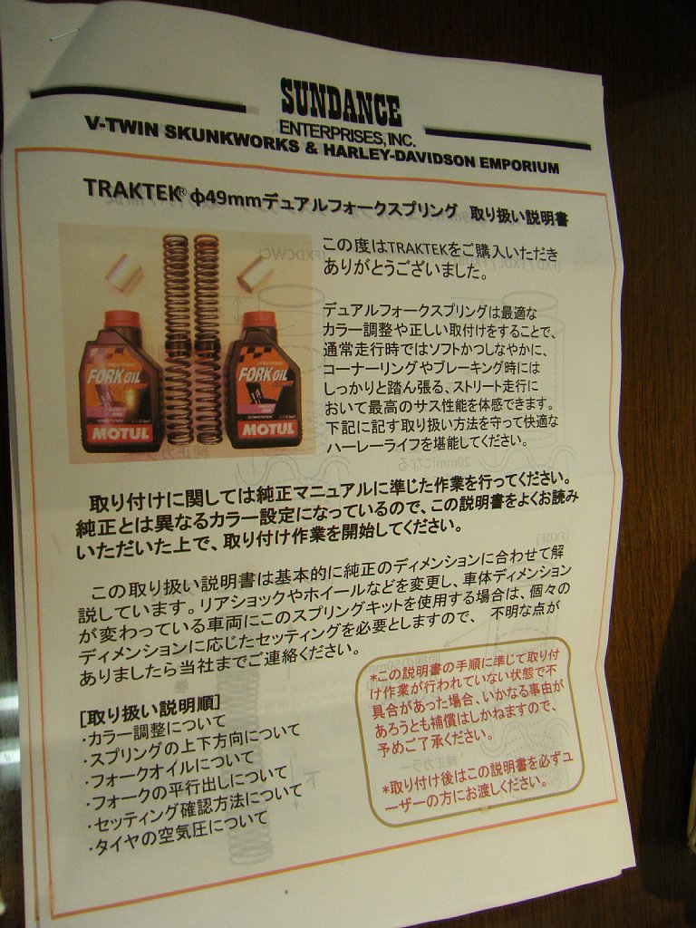 サンダンスのトラックテックフォークスプリングの取り付けはまだですが、ねたに困るので取扱説明書を写してみました^^