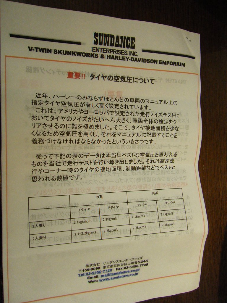 ハーレーダビッドソンのタイヤ空気圧もメーカー指定の空気圧と違うようです。